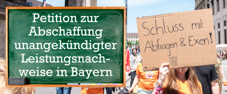 Am 3. Juli 2025 lehnte der Bildungsausschuss des Bayerischen Landtags die Petition ab. Die Begründung: Das Kultusministerium arbeite intern bereits an der Weiterentwicklung der Prüfungskultur – konkrete Ergebnisse lägen jedoch noch nicht vor. Auch das Projekt „Prüfungskultur innovativ“, das gemeinsam mit der Stiftung Bildungspakt Bayern entwickelt wurde, bleibt bislang ohne sichtbare Umsetzung.